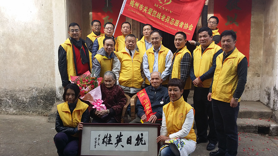 梅州市關愛抗戰老兵志愿者協會成立后,大力開展尋訪散居梅州山鄉的抗戰老兵,為尋訪到的每位抗戰老兵舉行民間簡樸又莊重的“贈章授榮”儀式、為困難老兵提供基本生活保障、為抗戰老兵提供日常生活照顧、為老兵過生日、重大節日慰問、生病看望看護、為抗戰老兵留影留聲、留手印,歸隊致以哀榮等等關愛活動,以熱心和誠心,為抗戰老兵送去“遲到的榮譽”和慰藉。經協會理事會研究,決定對抗戰老兵進行日常關愛的同時,給幸存抗戰老兵每月500元的致敬金。通過發放關愛金和致敬金,使老兵每月能獲得1100元的生活保障。2014年9月至2018年5月,廣東省雁洋公益基金會發放葉劍英基金關愛金380多萬元,協會動員社會各界熱心人士和志愿者38600多人次,行程逾10萬公里,為抗戰老兵發放致敬金及其它慰問金等700多萬元,為抗戰老兵發放御寒物資一大批、保健品和日常生活用品、慰問品一大批,為住院就醫的抗戰老兵送上慰問金和輪值守護陪伴,累計為300多位梅州抗戰老兵及老兵遺孀,廣東以外800多位抗戰老兵及老兵遺孀送上了最真摯的關懷。